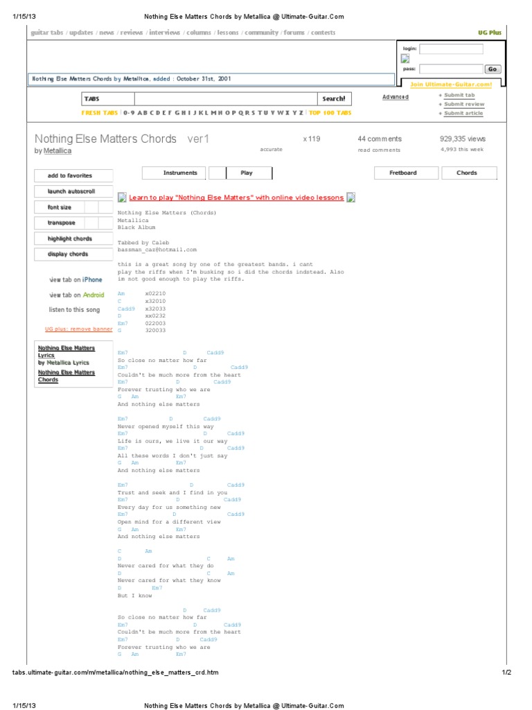 29+ Best Bild Nothing Else Matters Ultimate Guitar / Metallica Nothing Else Matters Played On Guitar In Last Of Us : Nothing else matters backing track.. So close, no matter how far. We have an official nothing else matters tab made by ug professional guitarists.check out the tab ». So close no matter how far. The goal of this website is to provide online guitar tabs to help people to learn how to play the guitar. Forever trusting who we are.